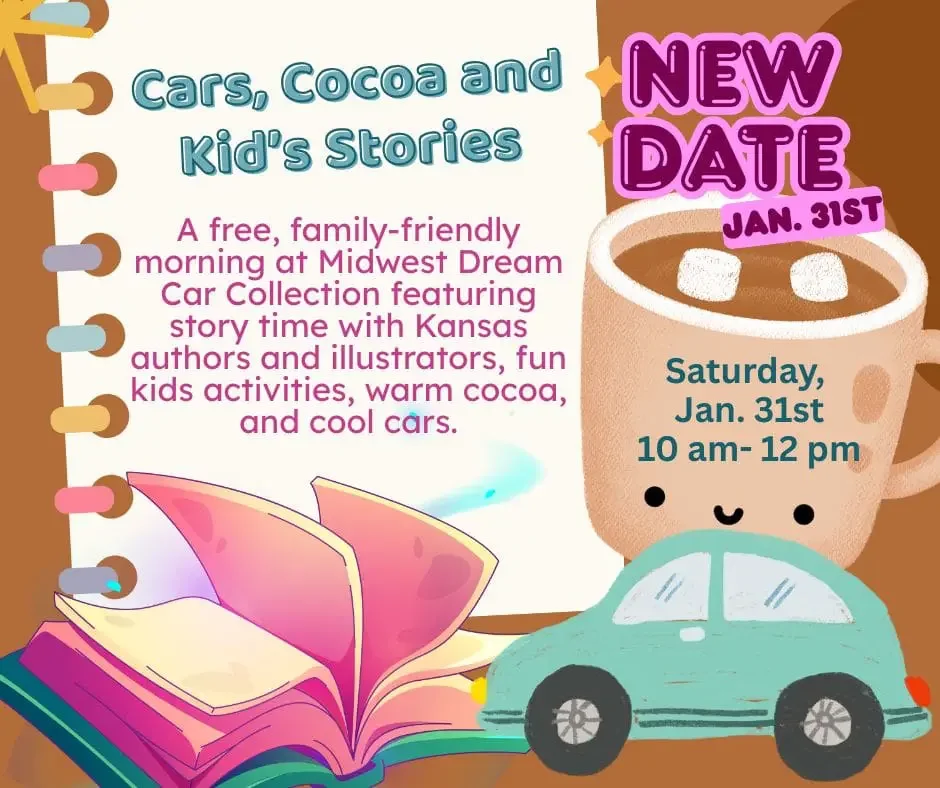 A free, family-friendly morning at the museum featuring storytime with Kansas authors and illustrators, fun kids activities, warm cocoa, and cool cars. Join us from 10–12 for reading, creativity, and smiles all around!