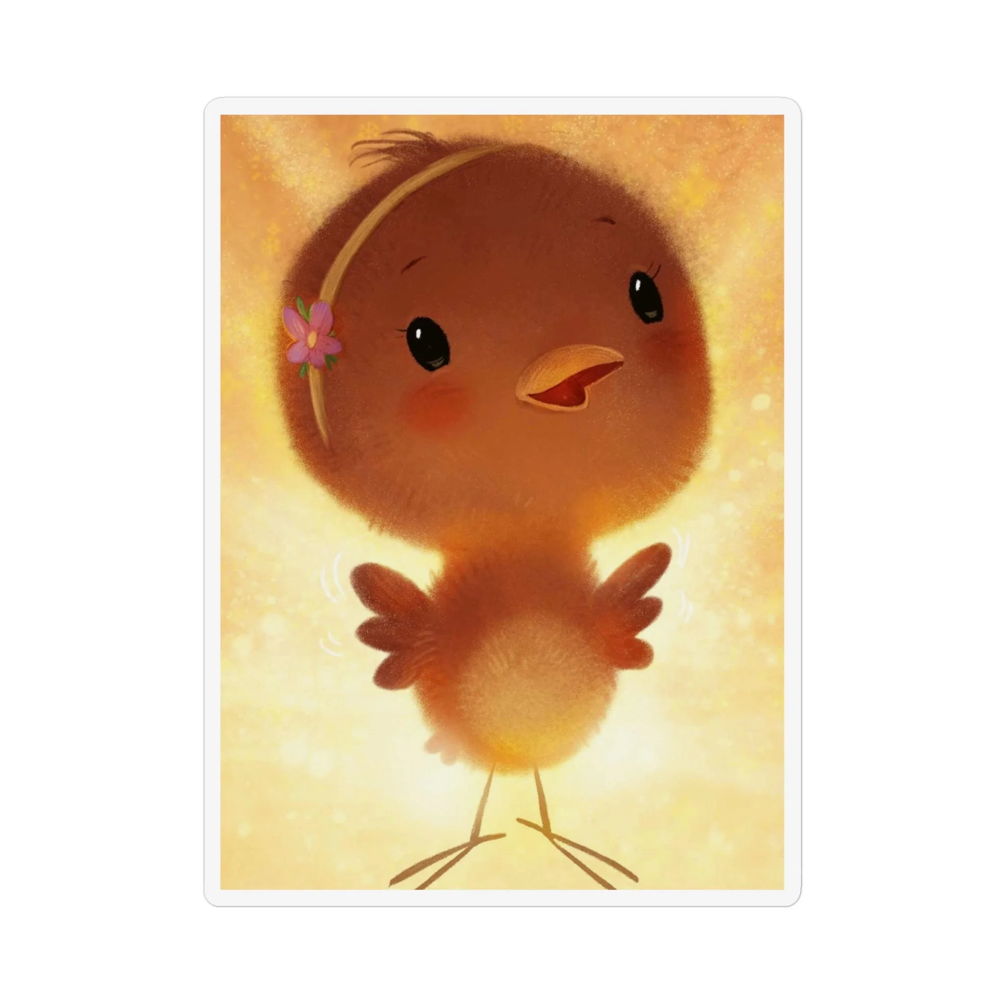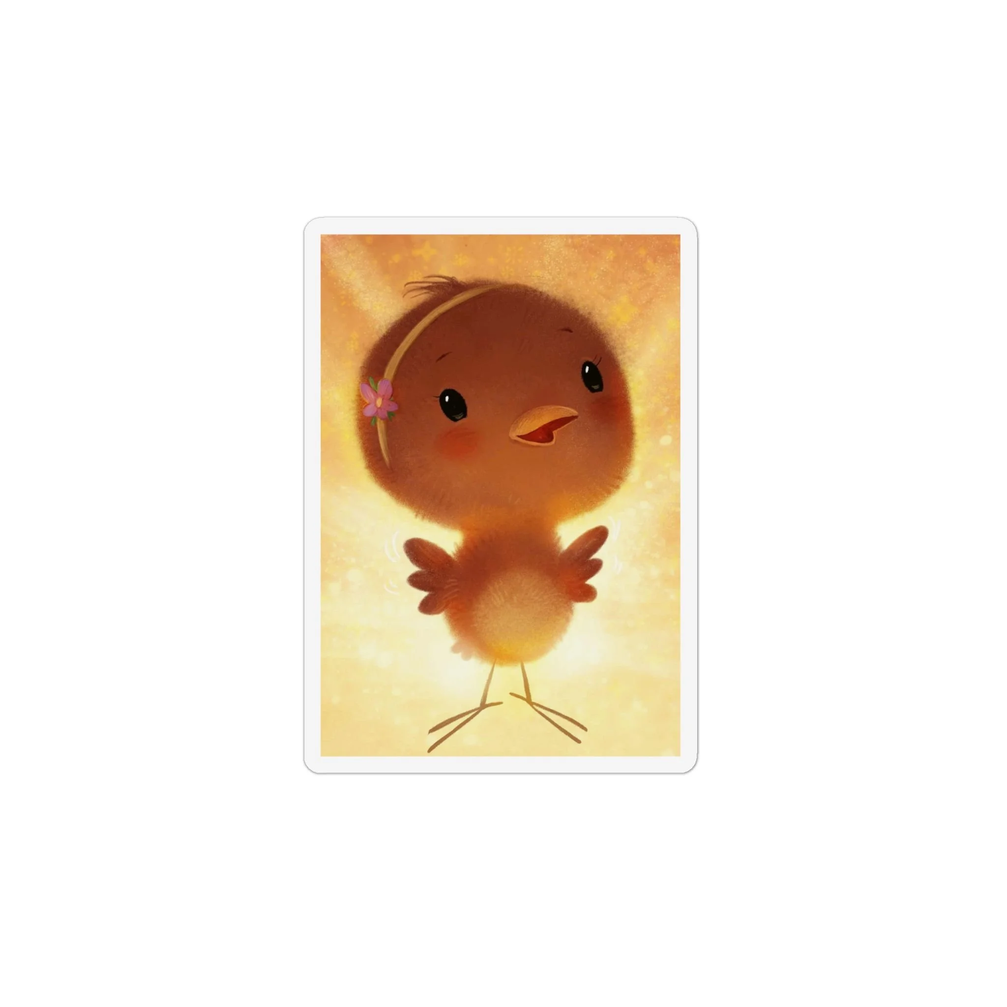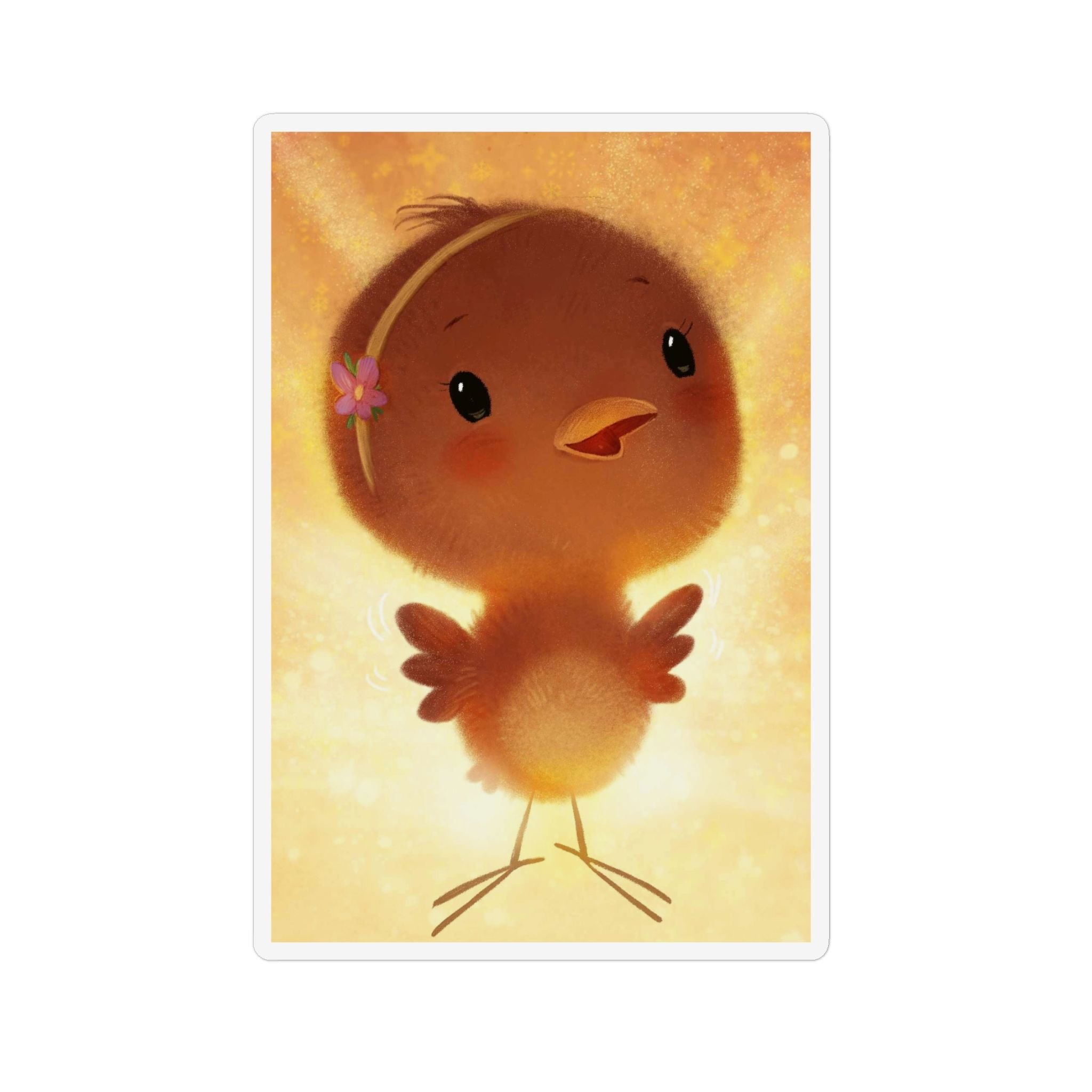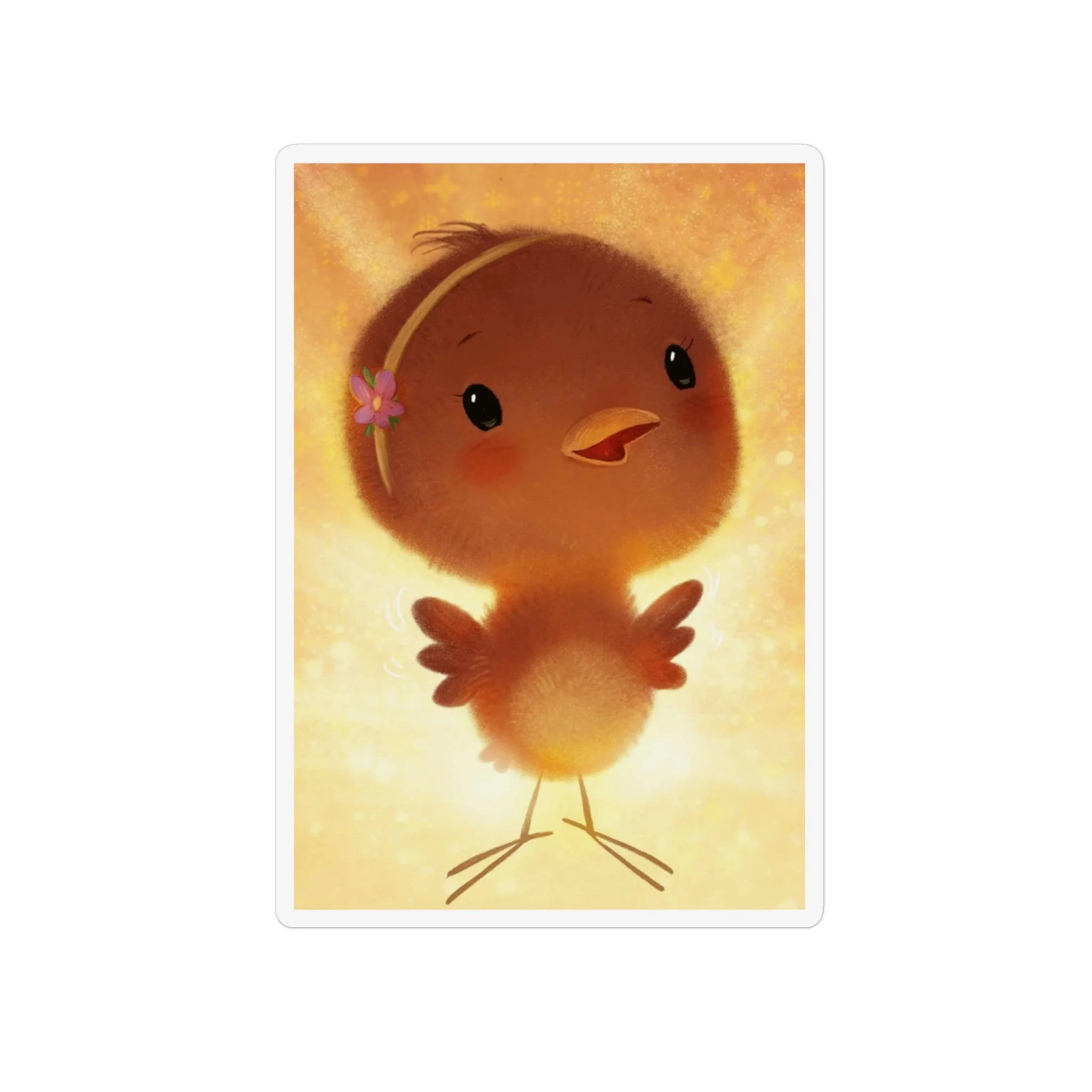A small, cheerful vinyl magnet that brings a warm, sunny mood to any metal surface. The matte-finish print features a golden, wide-eyed chick standing in a soft glow — the kind of sweet illustration that lifts a morning routine or brightens a study corner. Lightweight and slightly flexible, this die-cut magnet clings to fridges, lockers, and whiteboards with a secure black magnetic backing, while the crisp, vibrant colors and white border keep the artwork looking fresh. Durable enough for occasional outdoor use, it’s a simple accent that turns everyday spaces into little pockets of delight.